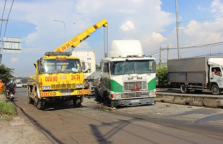 Cùng ngày, xe đầu kéo 51E-024.29 chở theo thùng container chạy trên quốc lộ 1A, tới khu vực quận 12, TP.HCM thì mất lái đâm gãy trụ biển báo giao thông và ủi nát một đoạn dải phân cách bằng bê tông. Sự việc chỉ dừng lại sau khi xe này lao tiếp qua làn đường dành cho phương tiện hai bánh và nằm tại đó. Vụ tai nạn khiến giao thông nơi này bị ùn tắc nghiêm trọng.