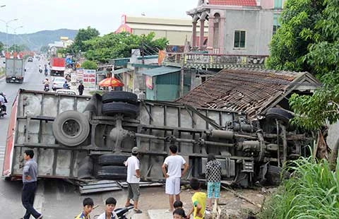Chiếc xe tải biển số 43C-067.04 do lái xe Nguyễn Thanh Thủy (trú thị xã Sơn Tây, Hà Nội) điều khiển khi đến đoạn đường trên thì đâm vào một chiếc xe tải khác đang dừng ven đường. Do chạy với vận tốc nhanh nên xe 43C-067.04 tiếp tục lao tới đâm sập một nhà dân.