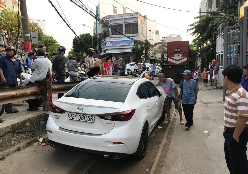 Như PLO.VNđã đưa tin, chiều 20-3, đầu máy xe lửa của Ga Đà Nẵng chạy trên đường ray nội bộ để quay đầu. Khi đến đoạn gần giao lộ với đường Hoàng Hoa Thám (phường Tân Chính, quận Thanh Khê, Đà Nẵng) gặp ô tô này đậu giữa đường ray khiến tàu không thể di chuyển.
