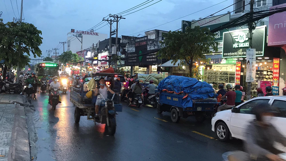 Ảnh hưởng từ vụ việc khiến giao thông qua khu vực ùn ứ nghiêm trọng. Ảnh: HT