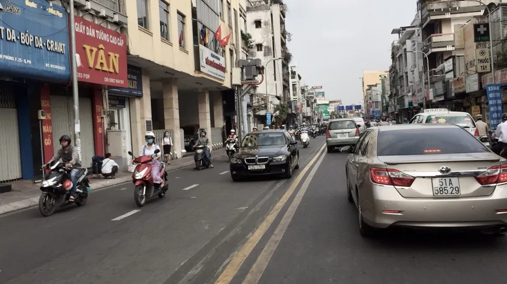 Những chiếc ô tô đầu tiên đã lưu thông trên đường Phan Đình Phùng đoạn từ ngã tư Phú Nhuận đến cầu Kiệu. Ảnh: MP