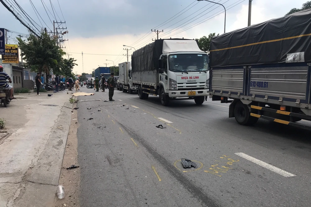 Khi đến đoạn gần ngã 3 Cây Điệp (phường Dĩ An, TP Dĩ An) thì bị một chiếc xe đầu kéo 93C-062.79 chạy cùng chiều tông trúng.