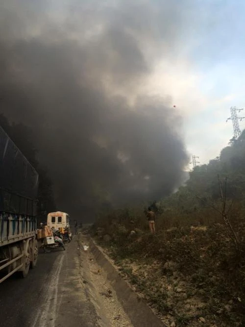 Hình ảnh trên mạng xã hội cho thấy khu vực xảy ra tai nạn, khói đen bốc cao nghi ngút.