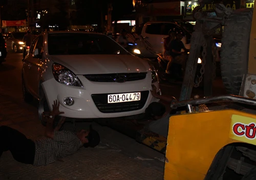 Lực lượng cứu hộ đến đưa chiếc xe khỏi hiện trường. Ảnh: T.Dũng