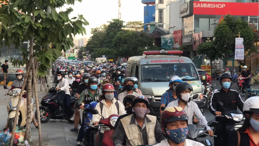 Chiều 19-3, ô tô bảy chỗ biển số TP.HCM chạy trên đường Phan Văn Trị theo hướng từ đường Phạm Văn Đồng về đường Thống Nhất.