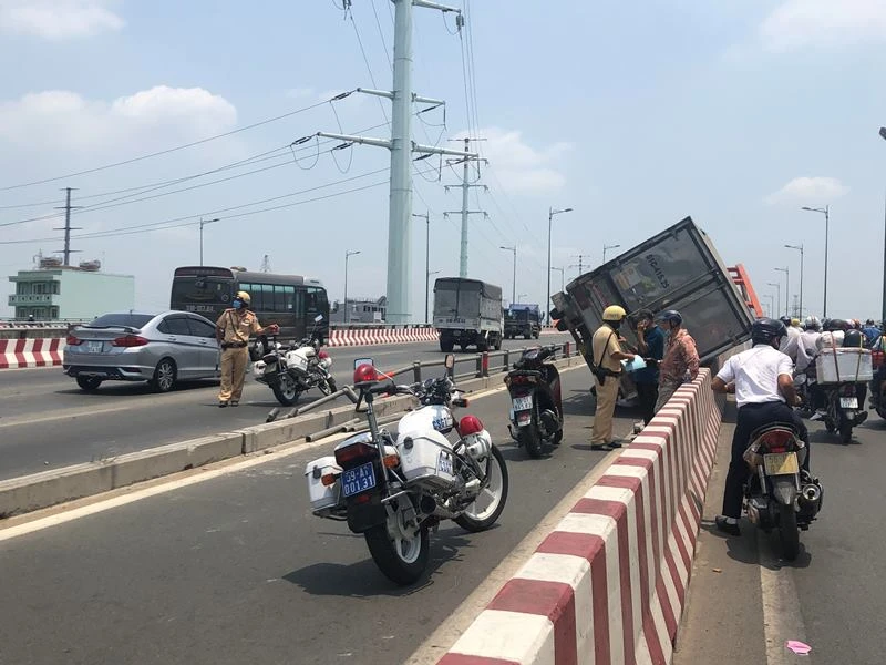 Trưa 23-3 trên cầu Bình Lợi (TP.HCM) xảy ra vụ tai nạn giao thông khiến nhiều người hú vía.