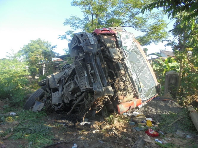 Theo nhân chứng, xe ô tô tải 43C-03142 do tài xế Đỗ Mạnh Cường (34 tuổi ngụ Hòa Bắc, quận Liên Chiểu, TP Đà Nẵng) điều khiển chạy theo hướng Bắc – Nam. Khi đến ví trí trên tài xế tránh chiếc xe máy chạy cùng chiều qua đường nên đã lao vào một góc nhà dân và lật nhào. Hậu quả, đầu xe tải nát bét, nhưng rất may không thiệt hại gì về người.