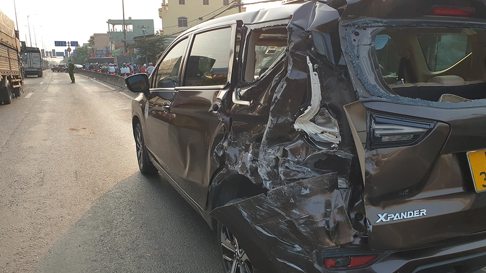 Vụ tông liên hoàn khiến cả ba xe hư hỏng phần đầu và đuôi, giao thông qua khu vực ùn ứ theo cả hai chiều trên nhiều km.