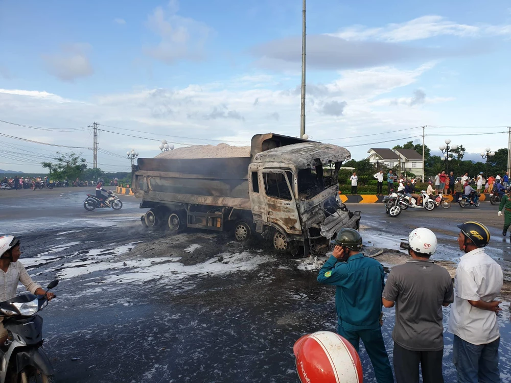 Ngay sau va chạm trên, cả hai xe cùng bốc cháy. Đám cháy lớn khiến người dân có mặt xung quanh không thể tiếp cận cabin đưa tài xế xe tải ra ngoài. Người này bị lửa lớn bao quanh, bốc cháy phía bên trong và tử vong. Riêng tài xế xe bồn thoát được khỏi xe…