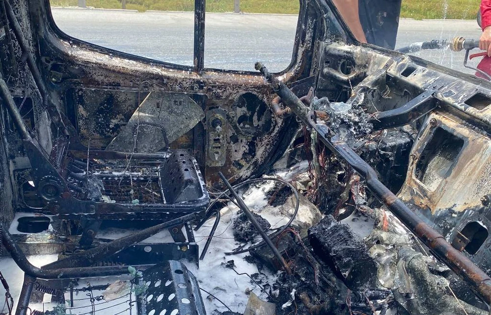 Tài xế đã kịp dừng xe, chạy khỏi đám cháy và gọi cứu hỏa.