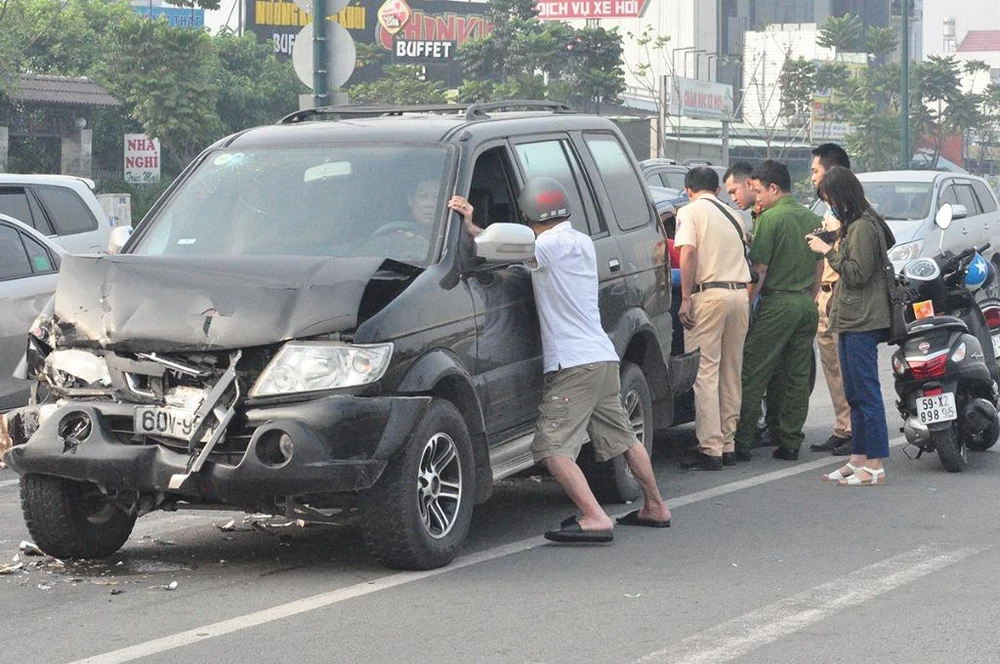 Khi đến giao lộ Hiệp Bình (quận Thủ Đức, TP.HCM) thì xe này bất ngờ tông thẳng vào ô tô con đang dừng chờ đèn đỏ phía trước.