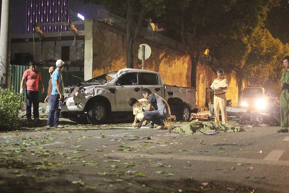 Theo thông tin ban đầu, khuya 20-4, ô tô bán tải Ford Ranger biển số TP.HCM do nam tài xế chưa xác định được danh tính chạy tốc độ cao trên đường Nguyễn Hữu Cảnh, hướng từ quận Bình Thạnh đi trung tâm TP.HCM.