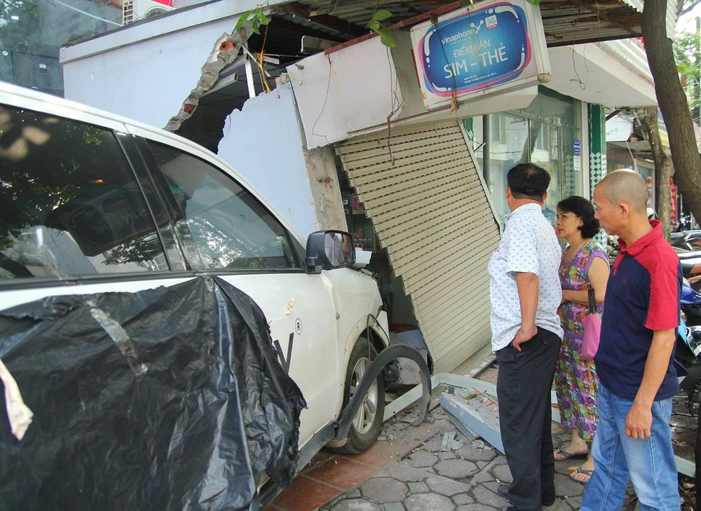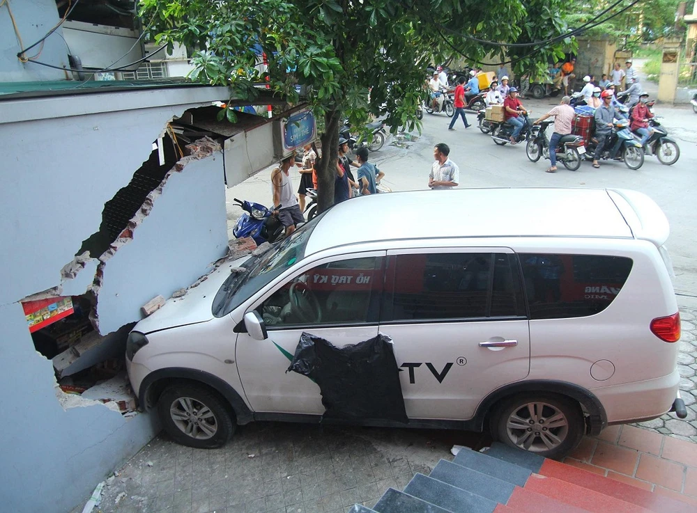 Khoảng 12 giờ 30 trưa nay (21-9), sau khi đỗ xe trên vỉa hè để giao hàng ở phố Trung Kính (Cầu Giấy, Hà Nội), tài xế tên L.B.T(28 tuổi), điều khiển ôtô Mitsubishi Zinger 7 chỗ, định lùi ra ngoài nhưng đạp nhầm chân ga, khiến húc đổ tường của một tiệm tạp hóa.