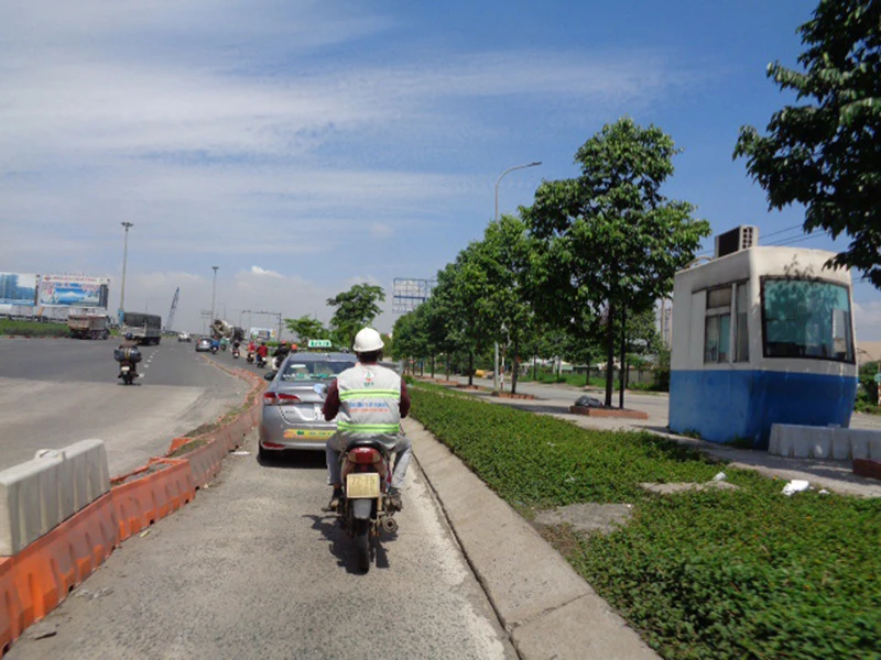 Mặc dù có biển báo cấm ngay đầu cầu nhưng các loại taxi, xe tải trọng tải nhỏ vẫn vô tư chạy vào, gây cản trở giao thông và nguy hiểm cho người đi xe máy.