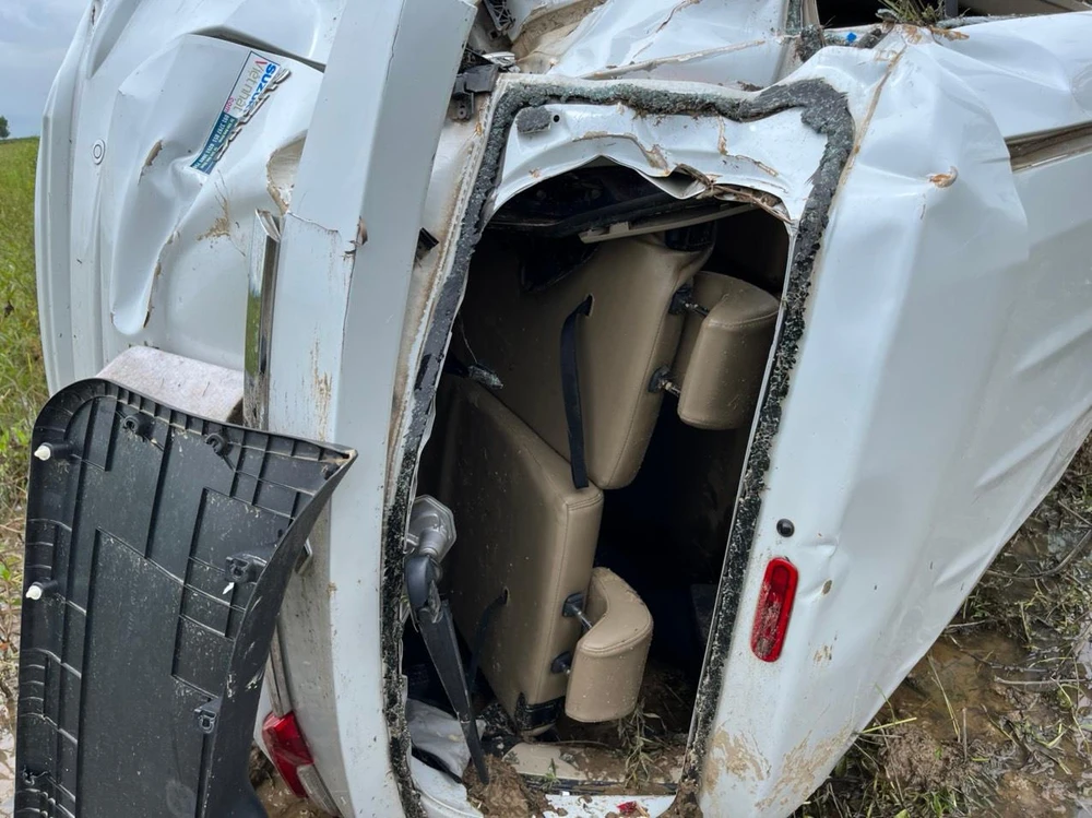 Theo người dân chứng kiến, chiếc ô tô lật nhiều vòng trước khi lao xuống ruộng. Ảnh: VÕ TÙNG |