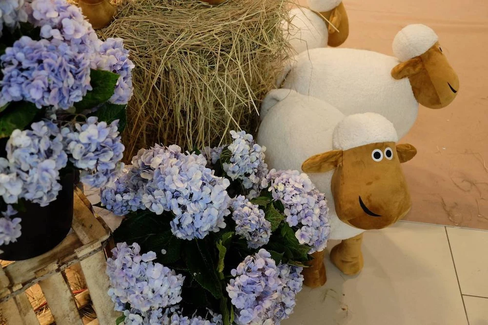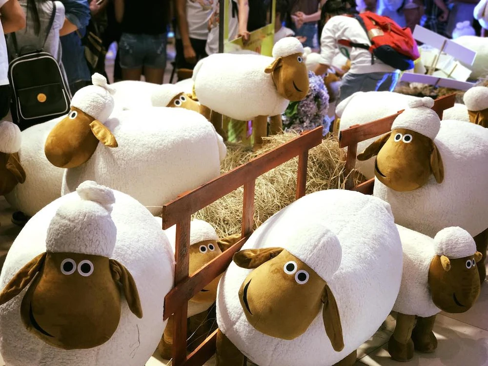 Hơn 100 con cừu bông với ba kích cỡ khác nhau đại diện cho gia đình cừu gồm: Cừu mẹ, cừu cha và cừu con được trưng bày rải rác khắp khuôn viên trại cừu thu hút sự chú ý của khán giả.