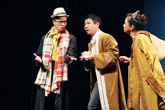 Nghệ sĩ Công Lý (giữa) trong tiểu phẩm Người giàu cũng khó.