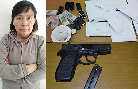 Oanh Hà và tang vật. Súng, đạn của Nguyễn Văn Chung bị công an phát hiện, thu giữ. Ảnh: M.KHANH