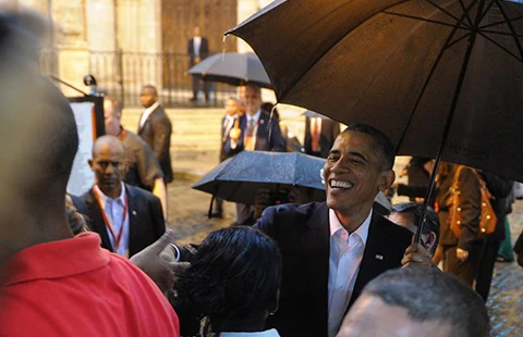 Ông Obama chào hỏi người dân trên đường phố Havana. Ảnh: REUTERS