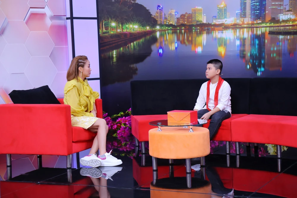 Bé Bảo Long chia sẻ tại chương trình. Ảnh: JET