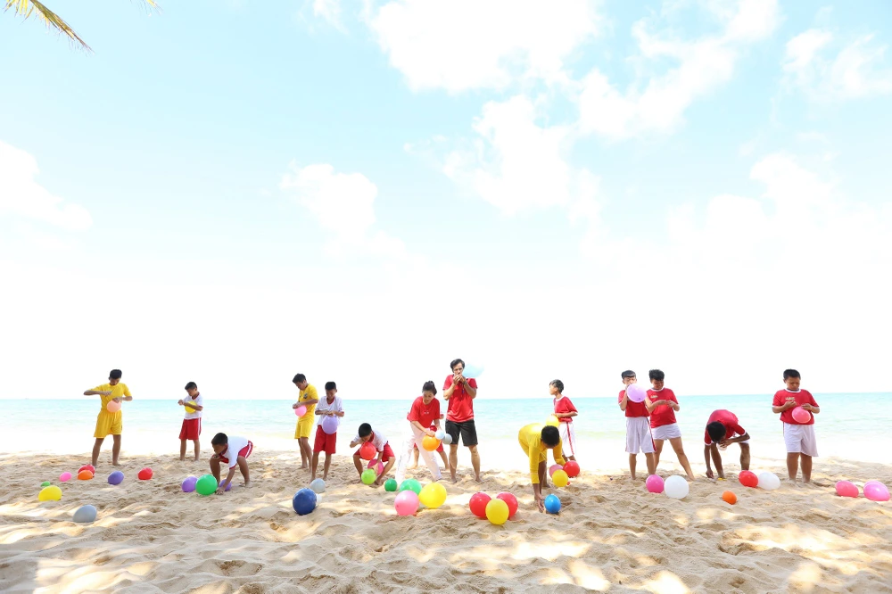 Trở lại với những trận đấu của tuần này, HLV Nguyễn Hồng Sơn đã có những bài tập thử sức các học trò trên mặt sân cát. Tại đây, tốp 13 Cầu thủ nhí 2020 đã chia đội và có trận đấu đối kháng đầu tiên tại Phú Quốc để cựu danh thủ chọn ra tốp 3 nguy hiểm.