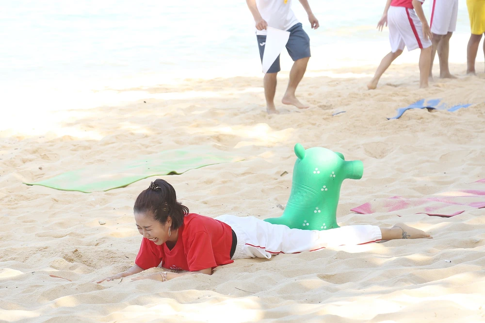 Ốc Thanh Vân không ngần ngại lăn xã chơi bóng cùng các cầu thủ nhỉ. Ảnh: BEE