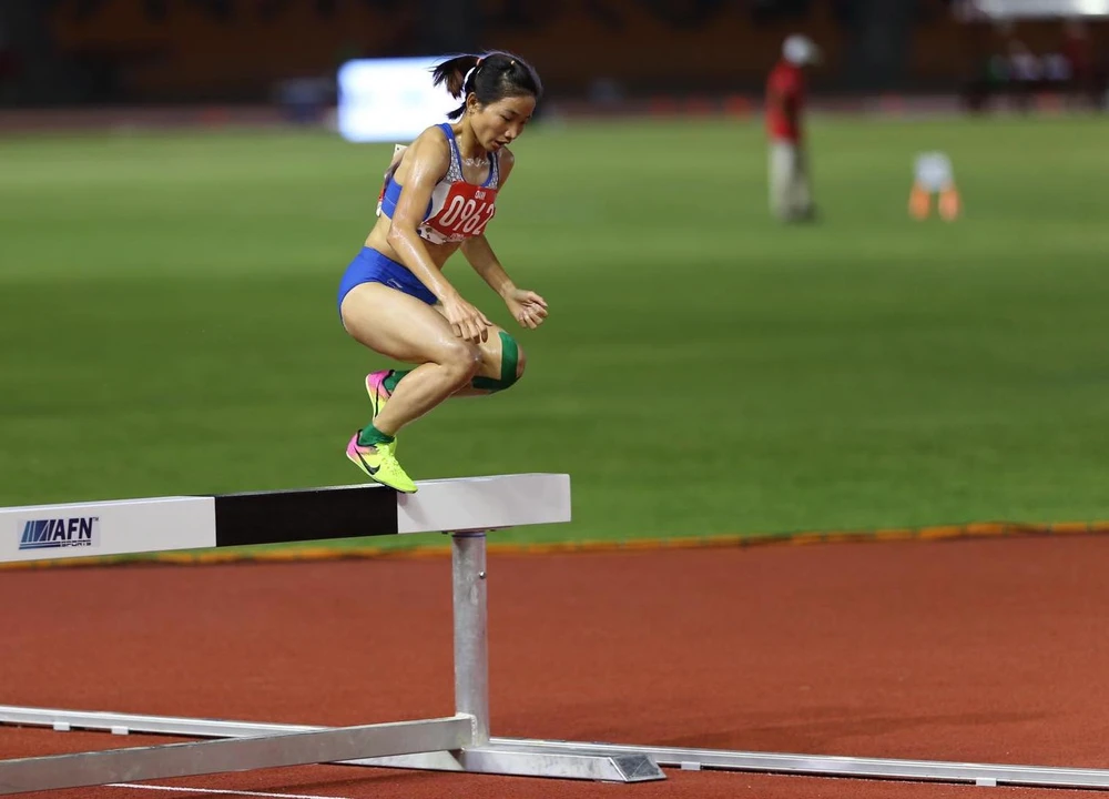 Nguyễn Thị Oanh tranh tài chung kết nội dung 3.000 m vượt chướng ngại vật. Ảnh: MINH QUANG