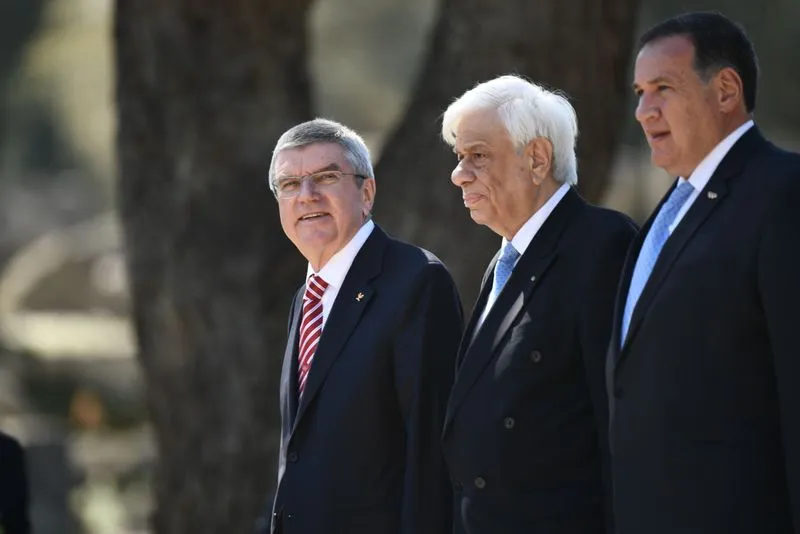 Chủ tịch IOC Thomas Bach (trái) và Tổng thống Prokopis (giữa)