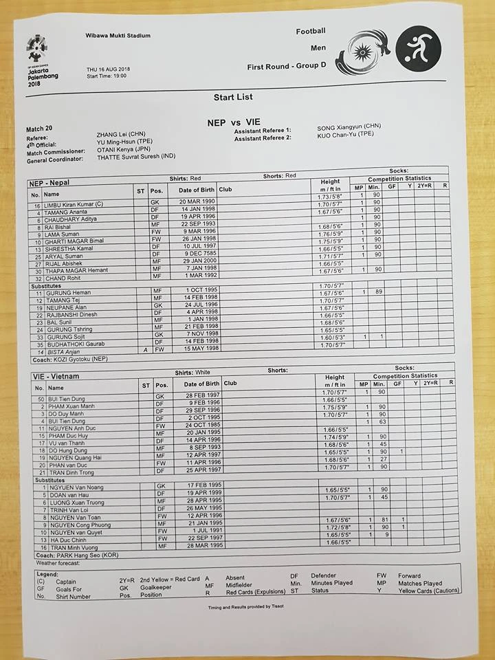 Lượt trận thứ hai bảng D Asiad 18 giữa Việt Nam và Nepal diễn ra vào lúc 19h hôm nay (16-8) trên sân Wibawa Mukti. Nhiệm vụ của thầy trò HLV là phải thắng Nepal 3 bàn trở lên mới giữ được ngôi đầu bảng bởi trước đó, Olympic Nhật Bản đã “hủy diệt” Olympic Pakistan với tỉ số 4-0.