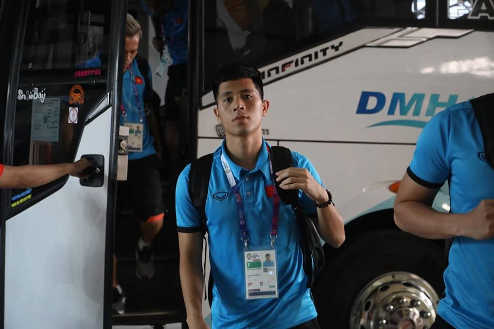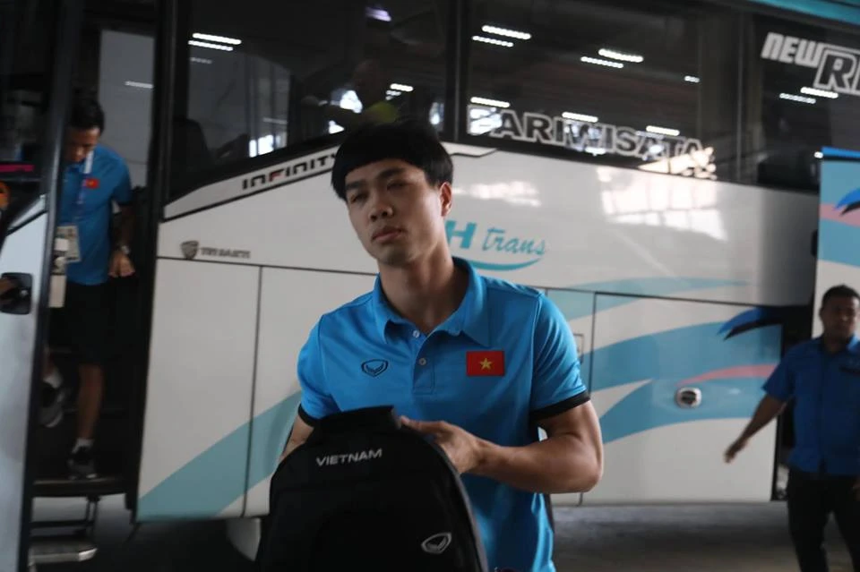 Công Phượng bước xuống xe.