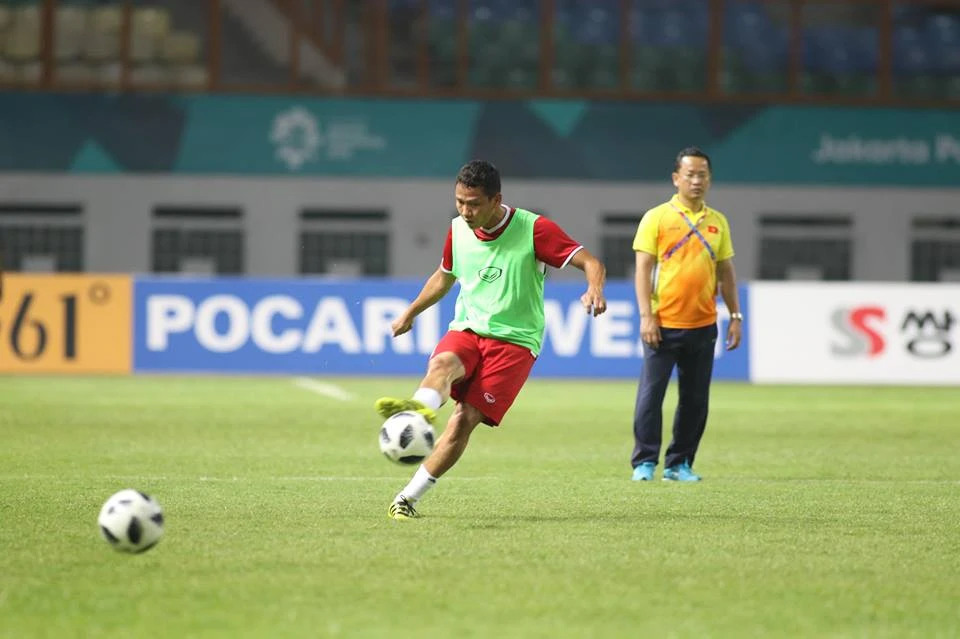 Olympic Việt Nam đã có mặt tại sân Wibawa Mukti chuẩn bị thi đấu với Nepal.