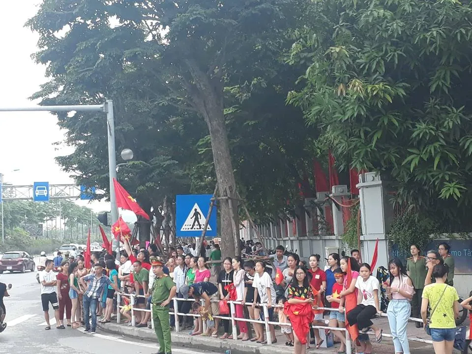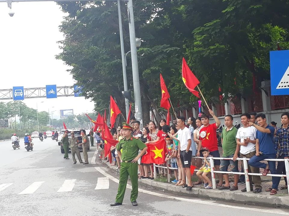 Rất nhiều CĐV Việt Nam đã đứng ở hai bên đường gần khu vực gần sân bay Nội Bài chờ đón thầy trò HLV Park Hang-seo. Lực lượng an ninh cũng được tăng cường nhằm giữ gìn trật tự và đưa đoàn xe chở đội Olympic Việt Nam về Mỹ Đình.