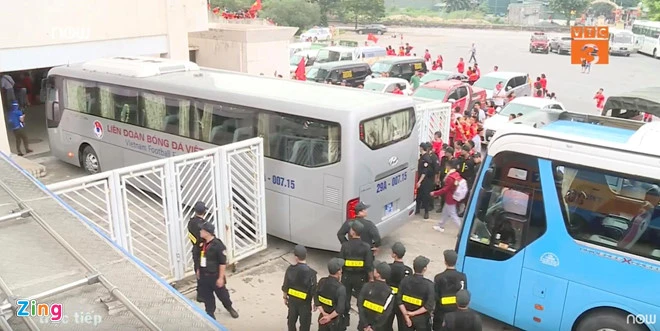 Đoàn xe chở đội Olympic Việt Nam đã đến Mỹ Đình sau một giờ di chuyển từ sân bay Nội Bài. Ảnh: Zing