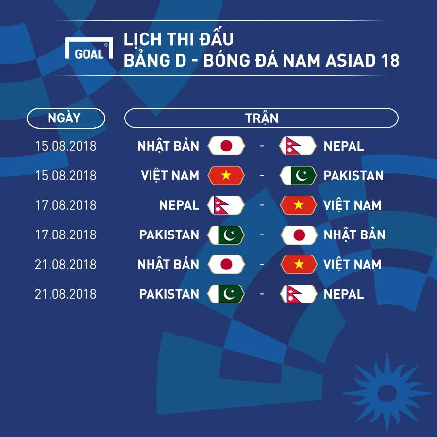 + Lịch thi đấu của Olympic Việt Nam tại Asiad 18 (chưa cập nhật giờ):