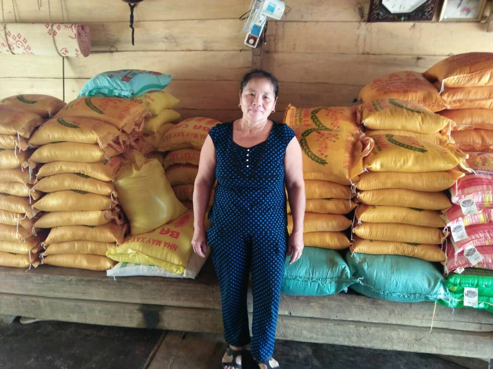 Bà Hoàn đứng buồn rầu bên 7 tạ gạo.