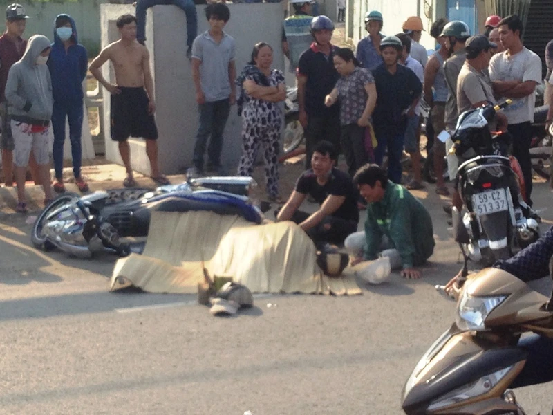 Sáng 22-3, nam thanh niên điều khiển xe máy biển số TP.HCM chở theo cha mình (63 tuổi) lưu thông trên đường Trần Não hướng từ đại lộ Mai Chí Thọ ra xa lộ Hà Nội.
