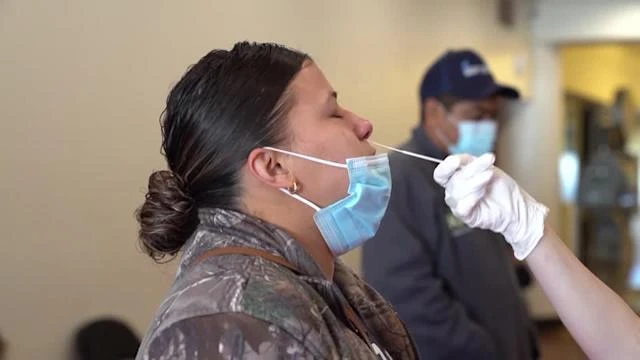 Một phụ nữ đang được lấy mẫu xét nghiệm COVID-19. Ảnh: YAHOO NEWS