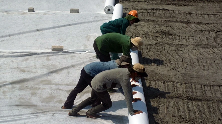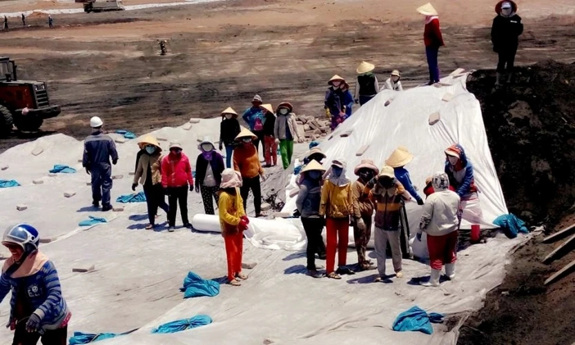 Che bạt bãi sỉ khổng lồ để không cho bụi xỉ làm ô nhiễm môi trường.