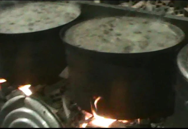 Tại thời điểm kiểm tra, đoàn ghi nhận khu vực luộc huyết heo chật chội, đầy bụi bặm, nền nhà đọng nước hôi hám. Sáu nồi nhôm to đùng, cáu bẩn đang luộc hàng trăm cục huyết heo. Nước trong nồi sôi sùng sục, đen thui, bốc mùi khó chịu. Cạnh đó, hàng chục thùng nhựa đựng huyết heo lõng bõng. Một thành viên trong đoàn mở nắp thùng nhựa kiểm tra, lập tức bụm mũi bụm miệng vì không chịu nổi mùi tanh tưởi bốc ra.