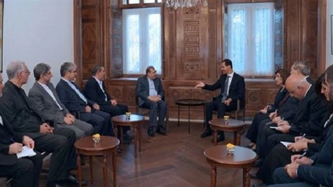 Tổng thống Syria Bashar al-Assad (phải) gặp gỡ phái đoàn Iran tại Damascus hôm 24-9. Ảnh: SANA