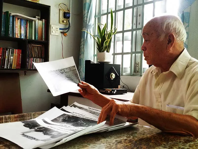 Ở tuổi 86, ông Ba Tây vẫn miệt mài tìm lại những bức ảnh tư liệu quý. Ảnh: N.KIM