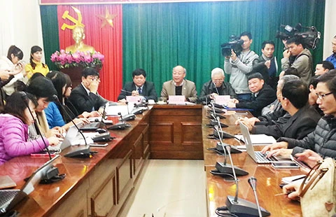 Ban bảo vệ, chăm sóc sức khỏe cán bộ Trung ương thông tin về tình hình sức khỏe ông Nguyễn Bá Thanh chiều 7-1. Ảnh: HUY HÀ
