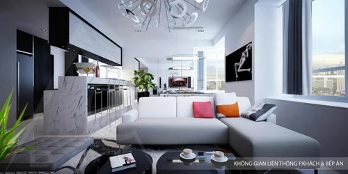 Từ cửa vào là phòng khách liên thông với nhà bếp.