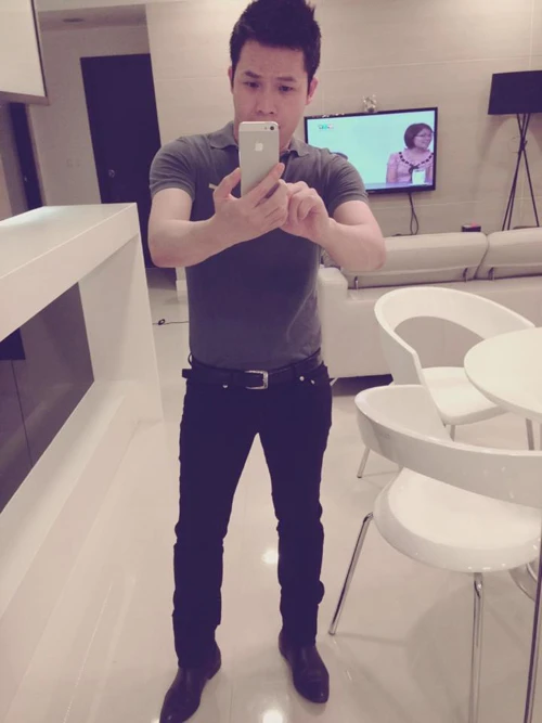 Ông bầu rất hứng thú chụp ảnh "tự sướng" trong không gian ấm áp của mình trước khi ra khỏi nhà.
