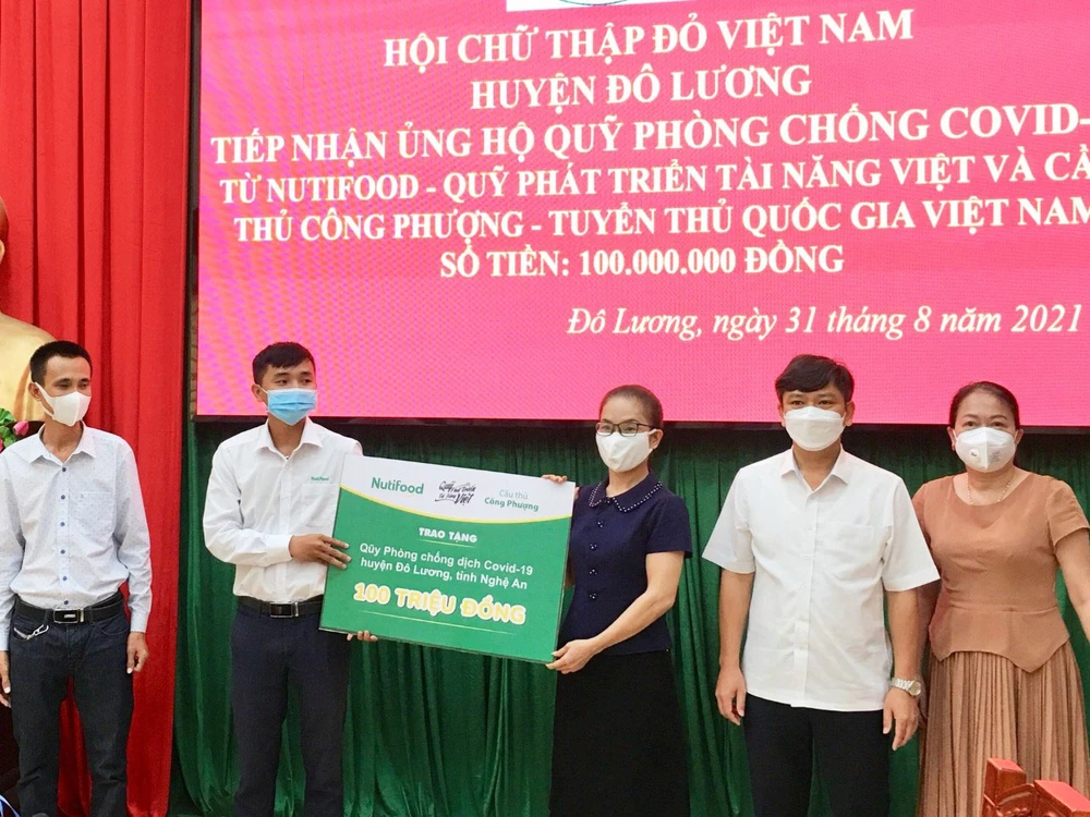 Ngày 31-8, đại diện Quỹ Phát triển Tài năng Việt của Ông Bầu đã traotặng 100 triệu đồng cho Qũy Phòng chống dịch COVID-19 huyện Đô Lương (tỉnh Nghệ An). Nguồn hỗ trợ này đến từ sự đóng góp của Công ty Cổ phần Thực phẩm Dinh dưỡng Nutifood và cầu thủ Công Phượng.