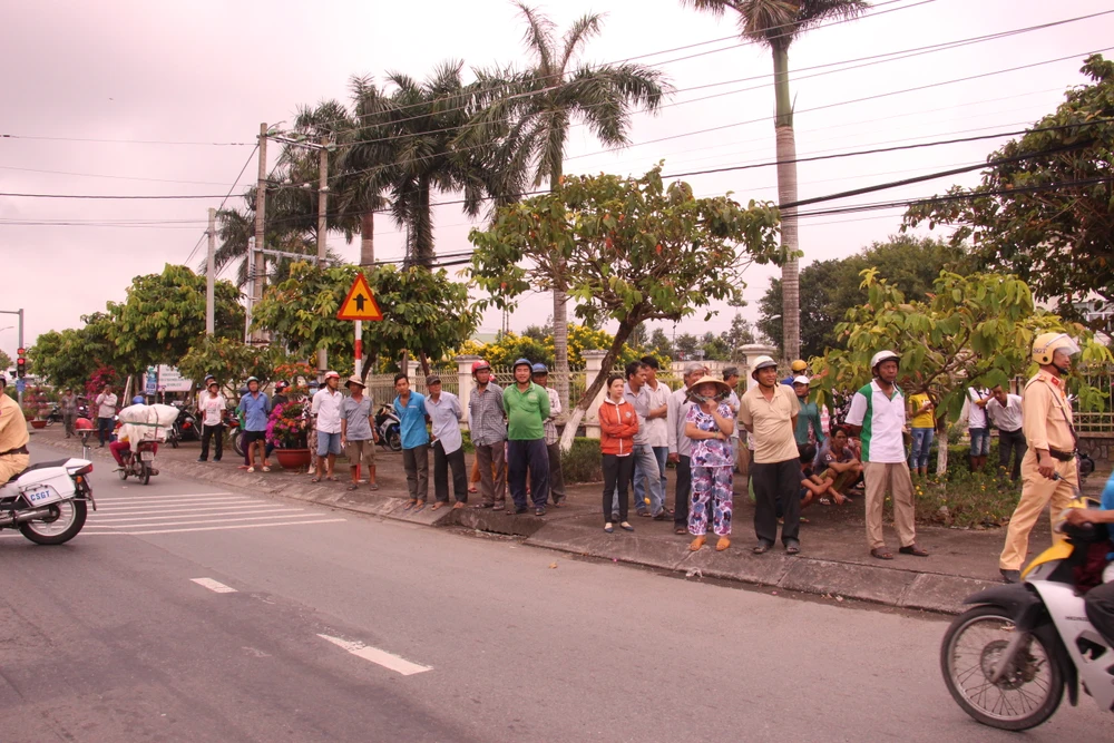 Từ sớm đã có rất đông người đã đến cổng hội trường UBND huyện Lai Vung đón người anh hùng về với đất mẹ trong niềm tiếc thương vô hạn.