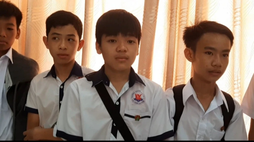 Học sinh Trường THCS thị trấn Lai Vung đến viếng ông Bảy.