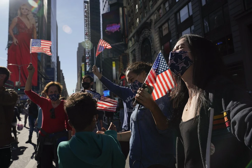 Người dân Mỹ đeo khẩu trang và đổ xuống đường ăn mừng chiến thắng của Tổng thống tân cử Joe Biden. Ảnh: REUTERS