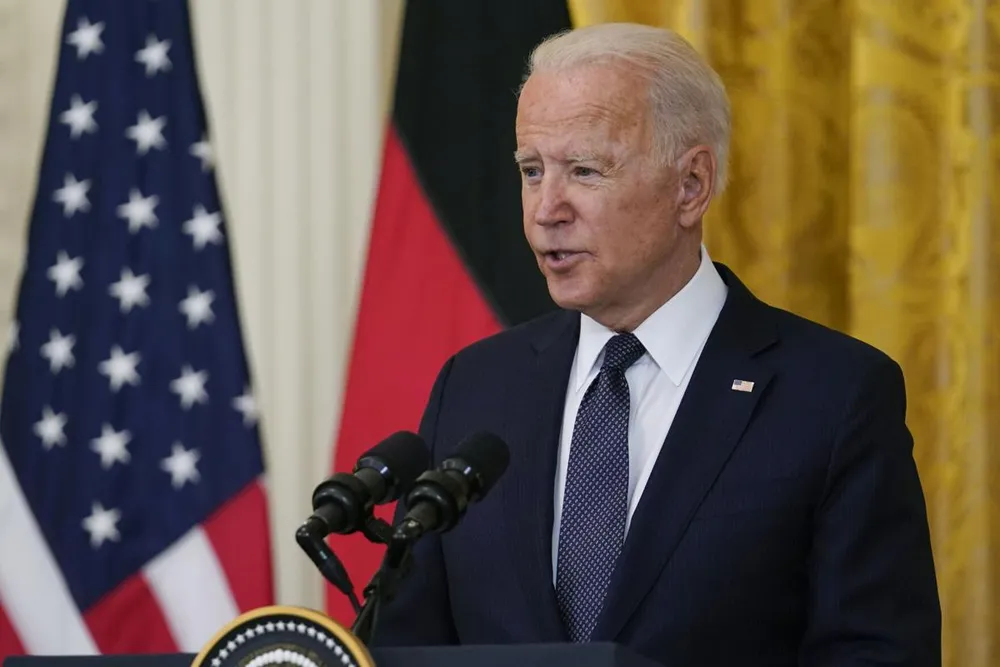 Tổng thống Mỹ Joe Biden phát biểu trong buổi họp báo với Thủ tướng Đức Angela Merkel tại Nhà Trắng, ngày 15-7. Ảnh: REUTERS