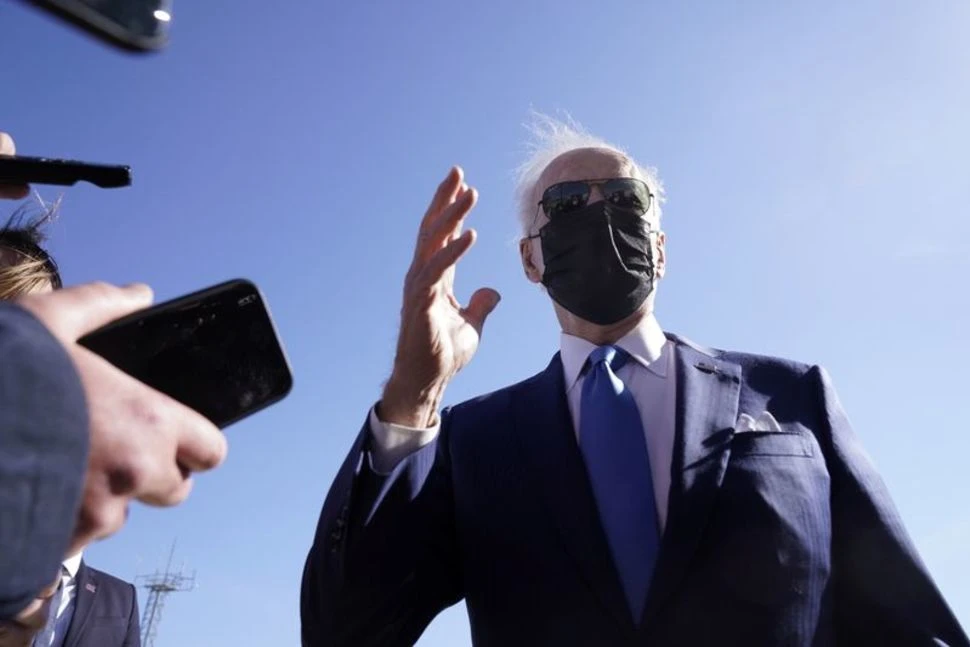 Tổng thống Mỹ Joe Biden trao đổi với giới truyền thông khi đặt chân tới sân bay New Castle, bang Delaware hôm 26-3. Ảnh: REUTERS